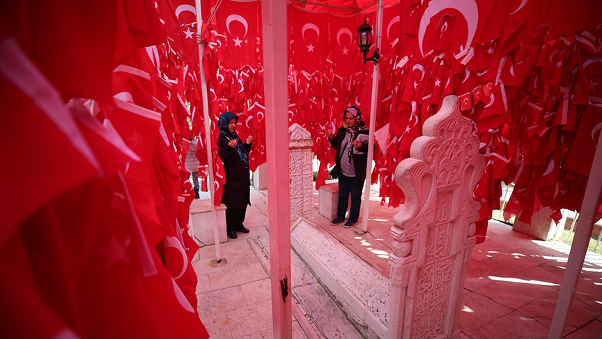 Gelen her ziyaretçinin Türk bayrağı astığı türbe, özellikle hafta sonları Türkiye'nin değişik bölgelerinden çok sayıda ziyaretçiyi ağırlıyor. Türbe, çevresi ve tavanındaki demirlere uç uca eklenerek asılan yüzlerce Türk bayrağıyla, kırmızı-beyaz görüntüsüyle dikkati çekiyor.